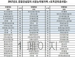 34위 주)동원개발, 35위 경남기업(주), 36위 우미건설(주)